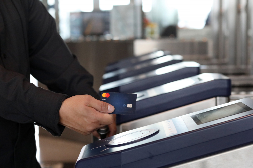 Identische Karte/Gerät verwenden: Passagiere benutzen für das Einchecken und Auschecken zum/vom Bahnhof dieselbe kontaktlose Debit- oder Kreditkarte oder dasselbe Mobilgerät.