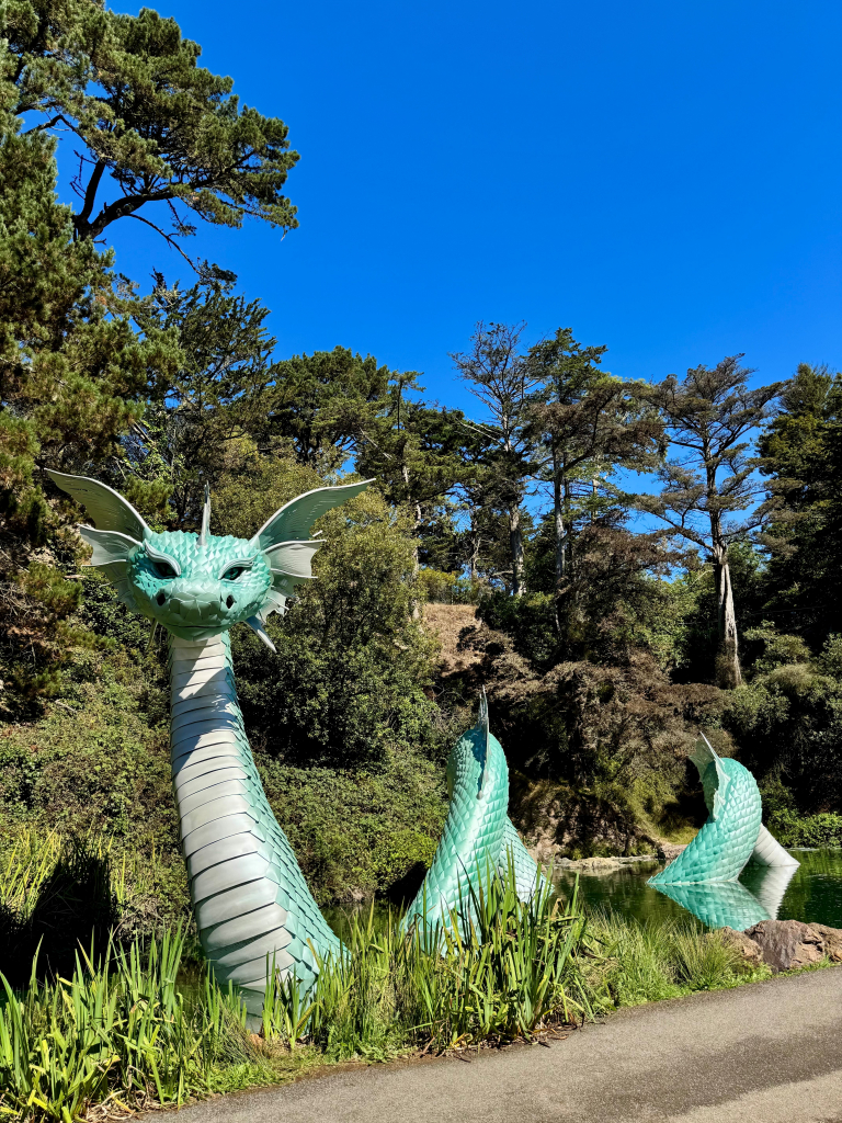 Eine überlebensgroße Seeschlange sorgt in San Franciscos Golden Gate Park für Aufsehen. Dahinter verbirgt sich eine neue Kunstinstallation namens „Naga“, die jetzt an der autofreien JFK Promenade vom San Francisco Recreation and Park Department feierlich eröffnet wurde.