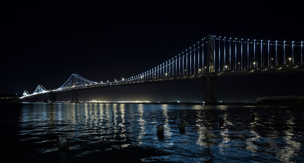 1989 zeigte die Erde, wer der Stärkere ist. Damals stürzte der östliche Teil der Bay Bridge ein. Ingenieure bauten daraufhin einen faktisch erdbebensicheren Nachfolger – dieser wurde 2013 fertig gestellt. Bis dahin führte die Bay Bridge ein Schattendasein im Vergleich mit der berühmten Golden Gate Bridge. Das sollte sich mit der Lichtinstallation durch den Künstler Leo Villareal schlagartig ändern.